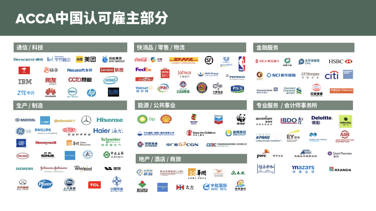 ACCA认证不仅是会计领域的“黄金通行证”,更助力员工开拓金融、咨询、企业管理等多元赛道。无论是志在四大会计师事务所、跨国企业,还是投身投行或创业,ACCA的全球认可度与跨行业适用性,都将为你解锁未来无限可能!